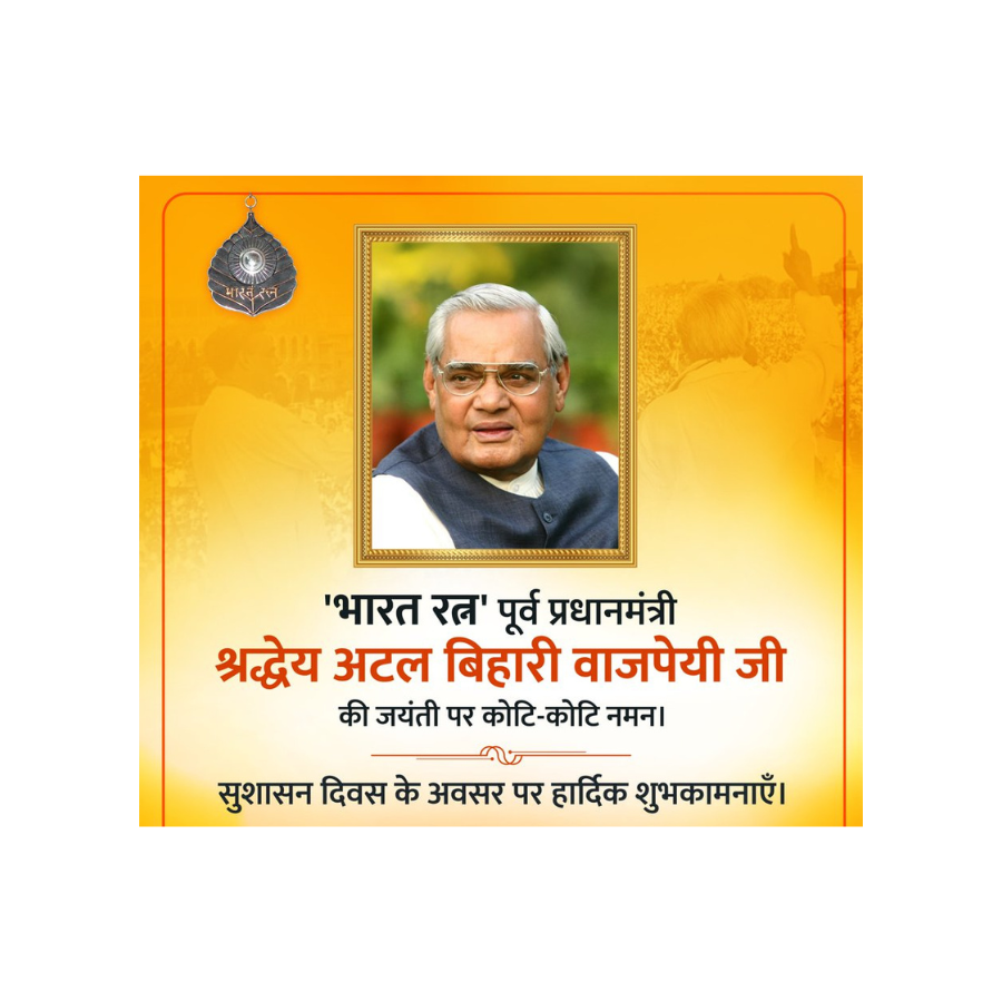 राष्ट्रनिर्माण के प्रखर स्तंभ, राजनीति के दूरदर्शी शिखर पुरुष और भारत रत्न से सम्मानित पूर्व प्रधानमंत्री अटल बिहारी वाजपेयी की जयंती आज पूरे देश में श्रद्धा और सम्मान के साथ मनाई गई। इस अवसर पर देशभर में उन्हें कोटि-कोटि नमन अर्पित किया गया और उनके योगदान को स्मरण किया गया।