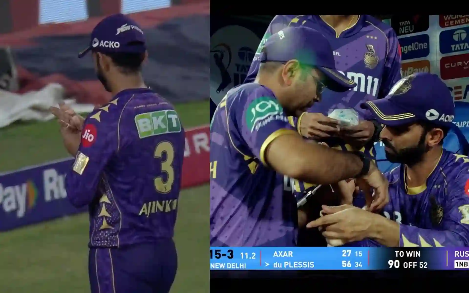 दिल्ली कैपिटल्स के खिलाफ मैच में केकेआर के कप्तान अजिंक्य रहाणे को चोट लगी। उसके बाद उन्होंने बाकी मैचों में फील्डिंग नहीं की।