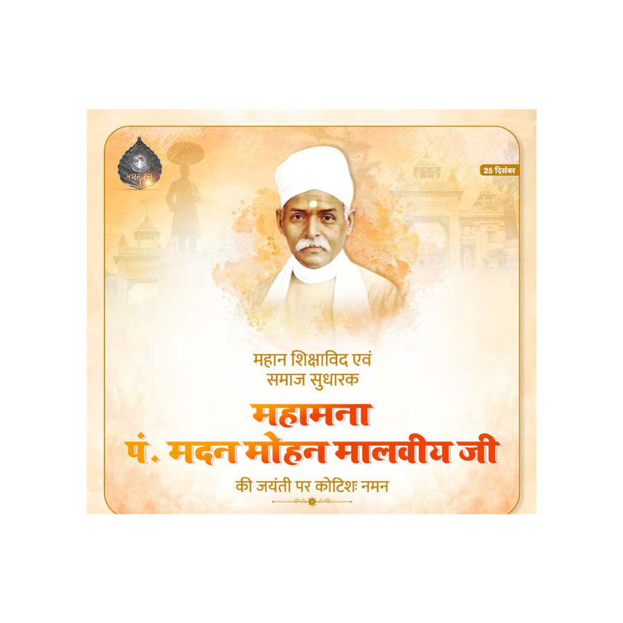 बनारस हिन्दू विश्वविद्यालय की स्थापना कर भारतीय शिक्षा जगत को नई दिशा देने वाले उत्कृष्ट शिक्षाविद, महान समाज सुधारक और भारत रत्न से सम्मानित पंडित मदन मोहन मालवीय जी की जयंती आज देशभर में श्रद्धा और सम्मान के साथ मनाई गई। इस अवसर पर उन्हें कोटि-कोटि नमन अर्पित करते हुए उनके अतुलनीय योगदान को स्मरण किया गया।