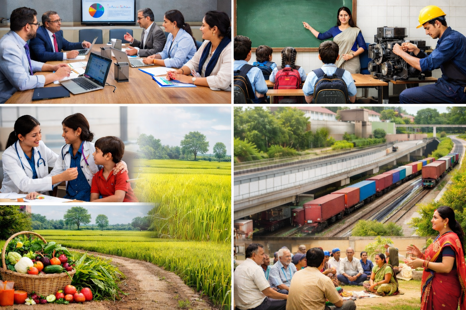 दूसरा स्तंभ ‘शिक्षा, कौशल एवं रोजगार क्षमता’ से जुड़ा है। इसमें गुणवत्तापूर्ण शिक्षा, आधुनिक पाठ्यक्रम, डिजिटल लर्निंग, कौशल विकास और युवाओं की रोजगार-योग्यता बढ़ाने पर विशेष बल दिया गया है। सरकार का मानना है कि सशक्त मानव संसाधन ही विकास की असली पूंजी है, इसलिए स्कूली शिक्षा से लेकर उच्च और तकनीकी शिक्षा तक सुधारों का खाका तैयार किया गया है।